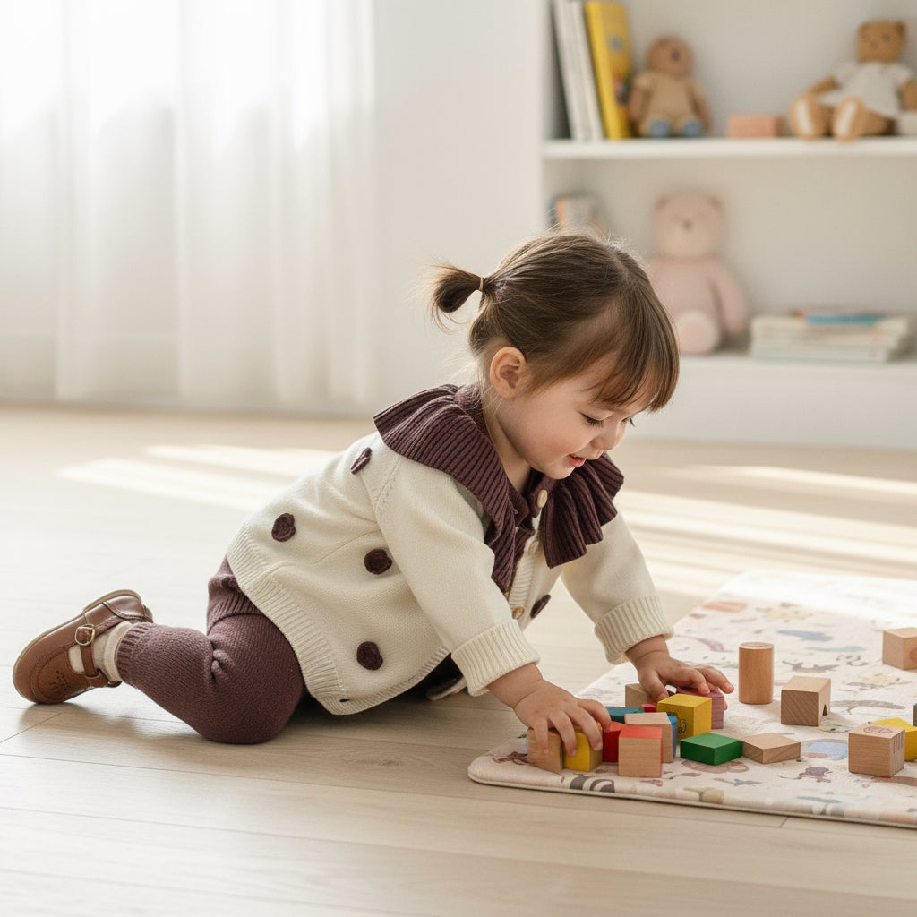 Adorable two-piece knitted set designed for baby girls, featuring a cozy long-sleeve cardigan and matching romper. The soft cotton fabric ensures comfort, while the delicate ruffled collar and little heart details add a charming.