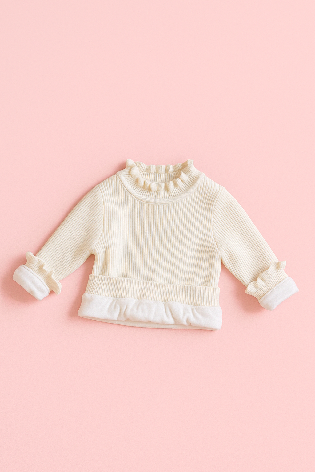 A cozy and adorable winter set designed to keep your little girl warm and comfortable. The top is made from soft, knitted fabric with a cute and playful front design, giving it a sweet and charming look. The material is warm, gentle on the skin, and perfect for daily wear during the colder seasons.
