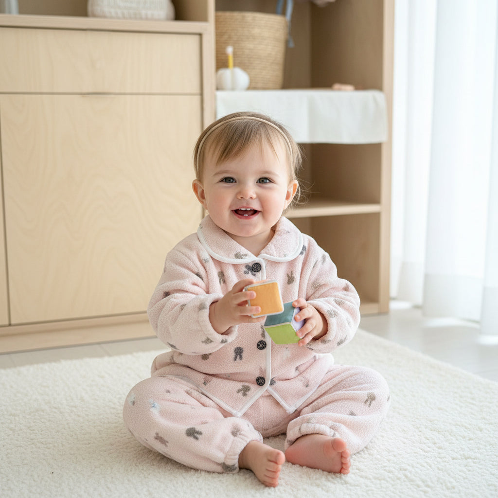 This is a soft, warm, winter-ready fleece pyjama set made from plush snow-flake textured fabric. The material is thick, cozy, and gentle on the skin, perfect for colder seasons. The set includes a long-sleeve top and matching pants, ideal for home, sleep, and indoor warmth.