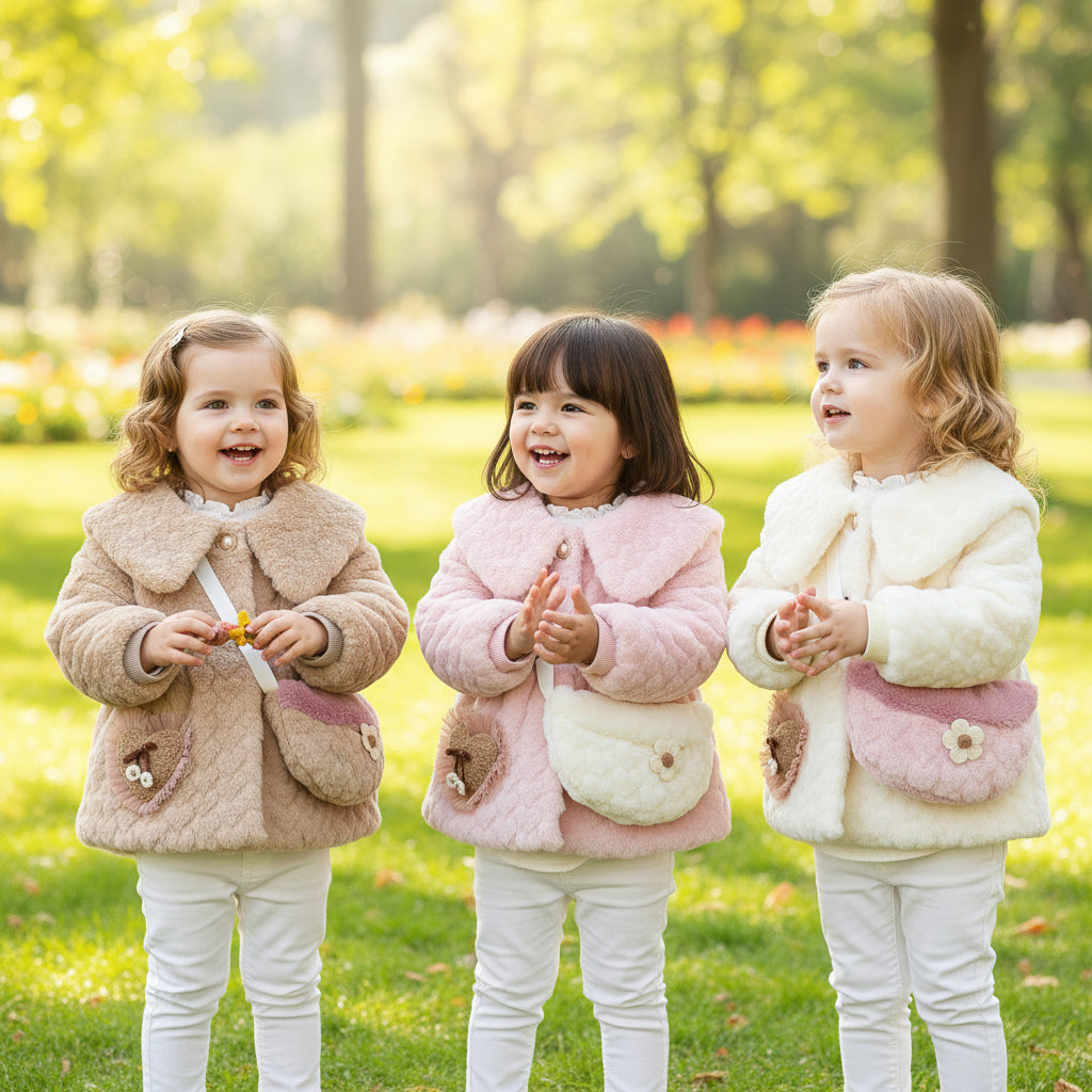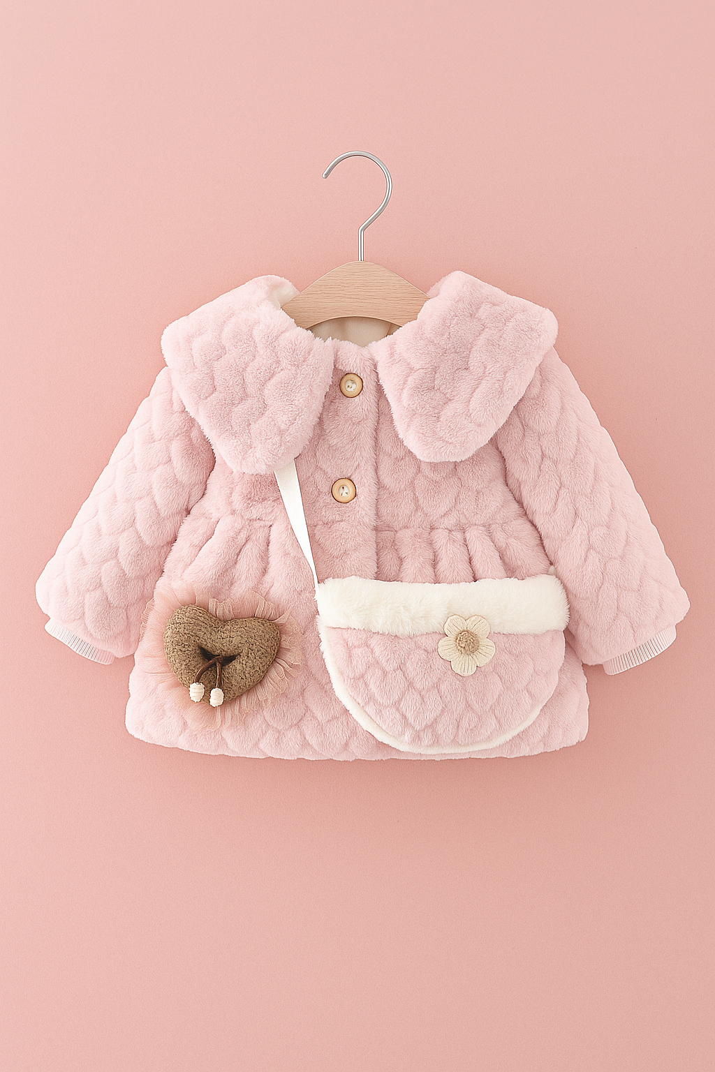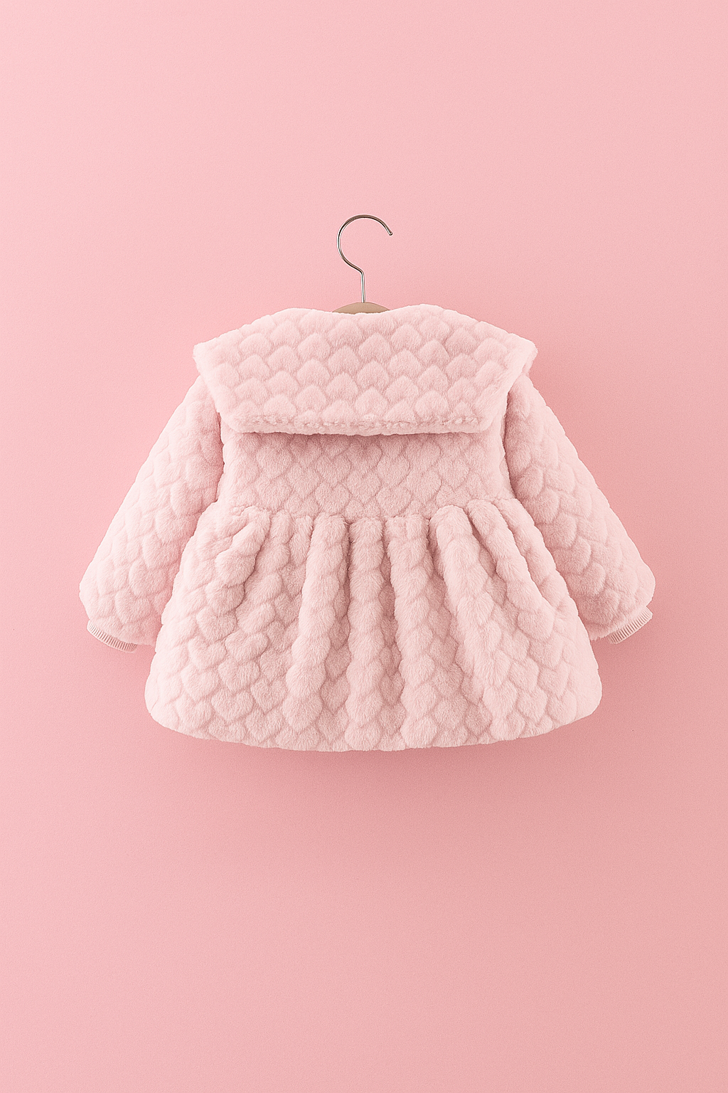 Adorable winter coat with heart-shaped pockets, made from soft fleece to keep your little one warm and cozy.
