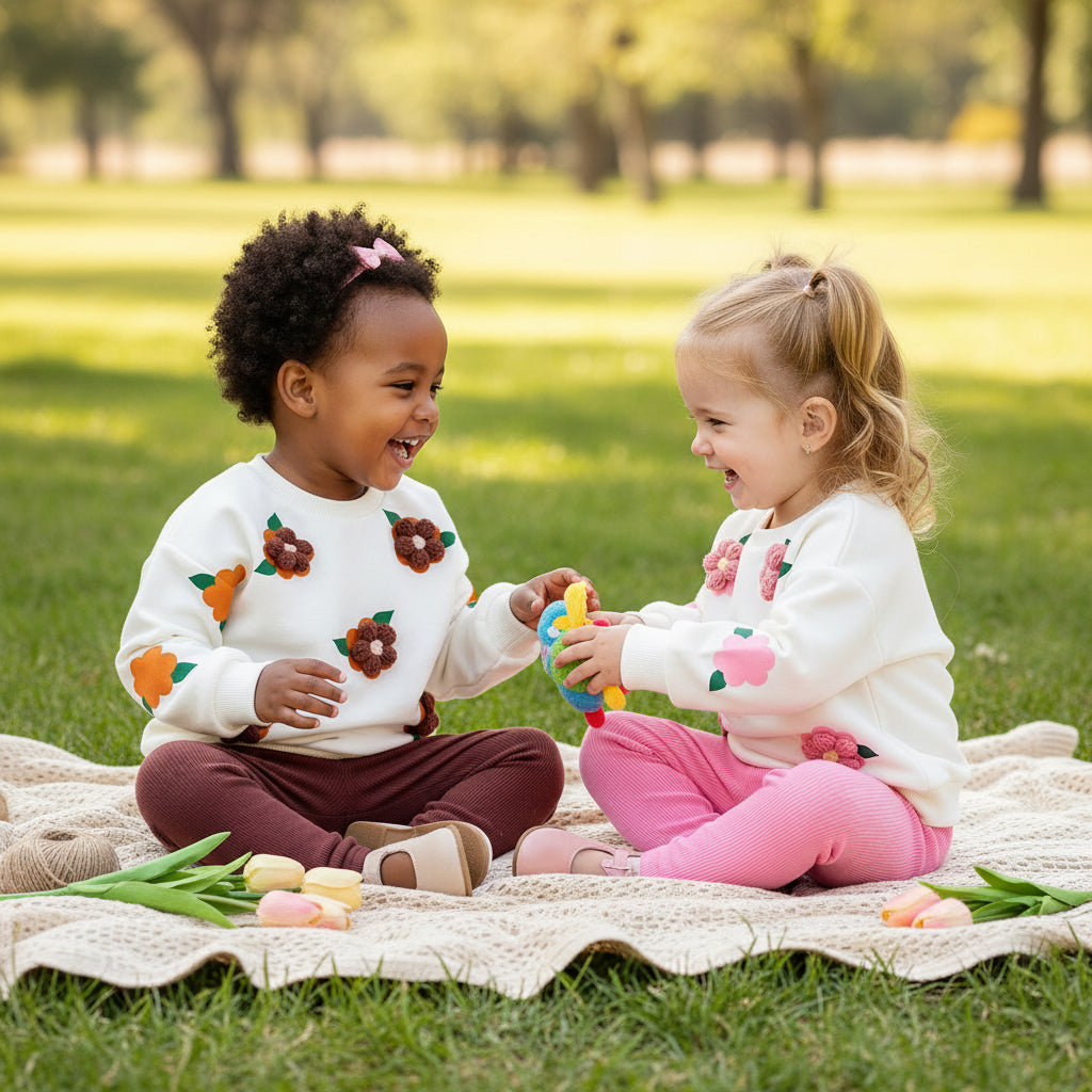 Featuring long sleeves and sweet European-inspired prints, this outfit is perfect for chilly days, family outings, and playtime snuggles.