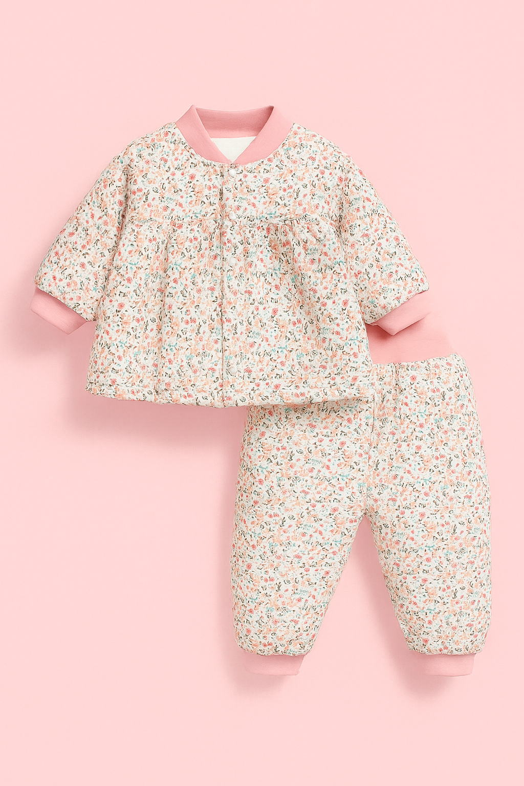 Designed with a delicate floral pattern and pastel tones, this outfit keeps your little one cozy while looking irresistibly cute.Â