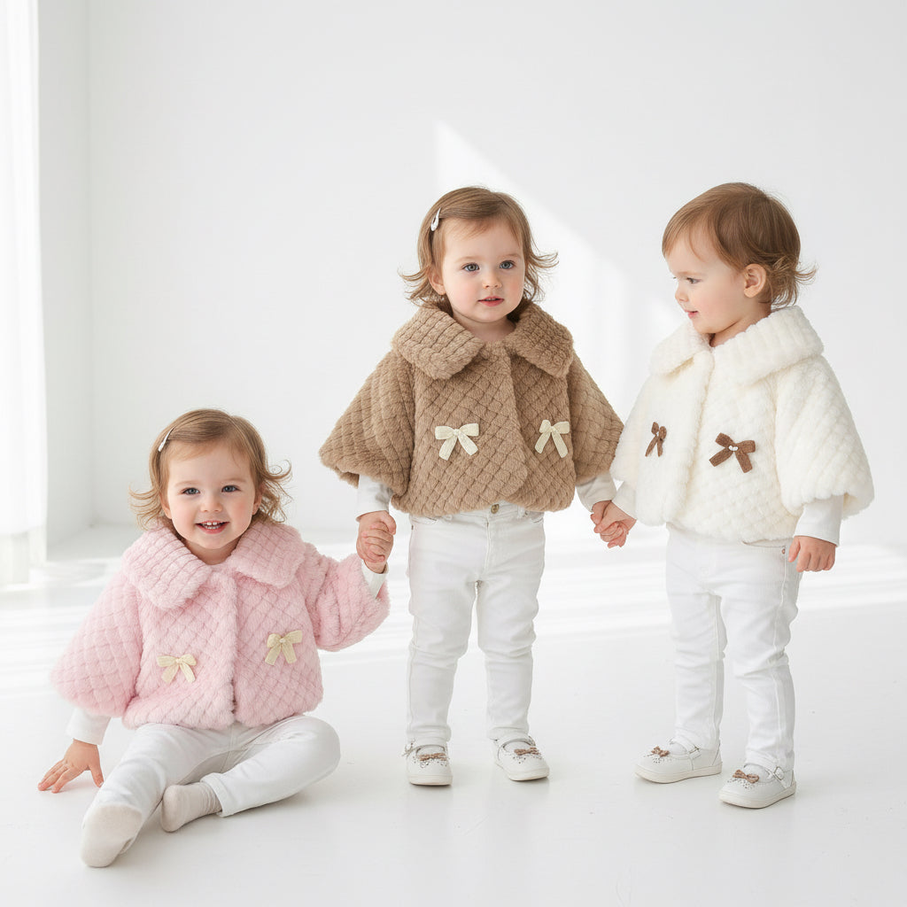 This darling winter coat is crafted from plush faux rabbit fur with a gentle quilted texture, keeping your baby snug and stylish all season.