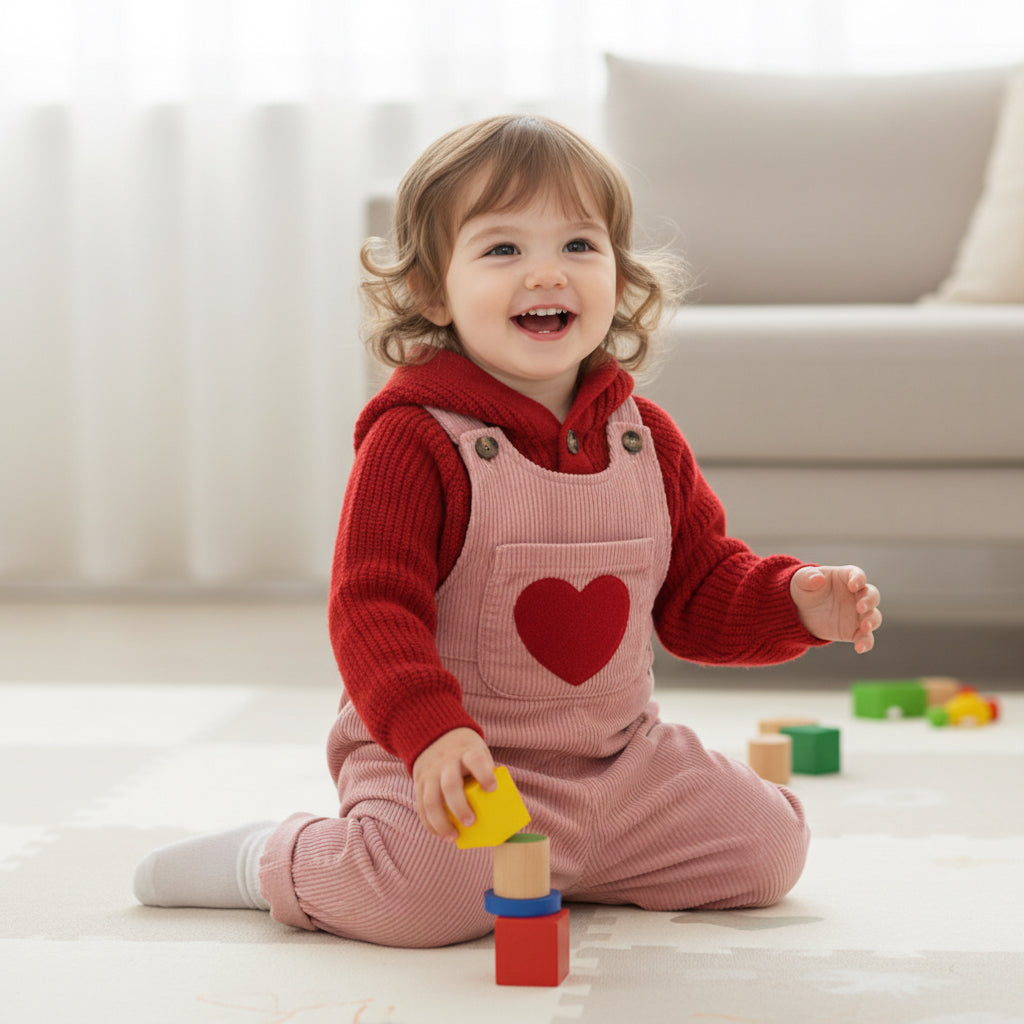 A cozy 2-piece overall set designed for comfort and style! Made from a soft cotton blend, this adorable outfit includes high-waist overalls and a matching top.
