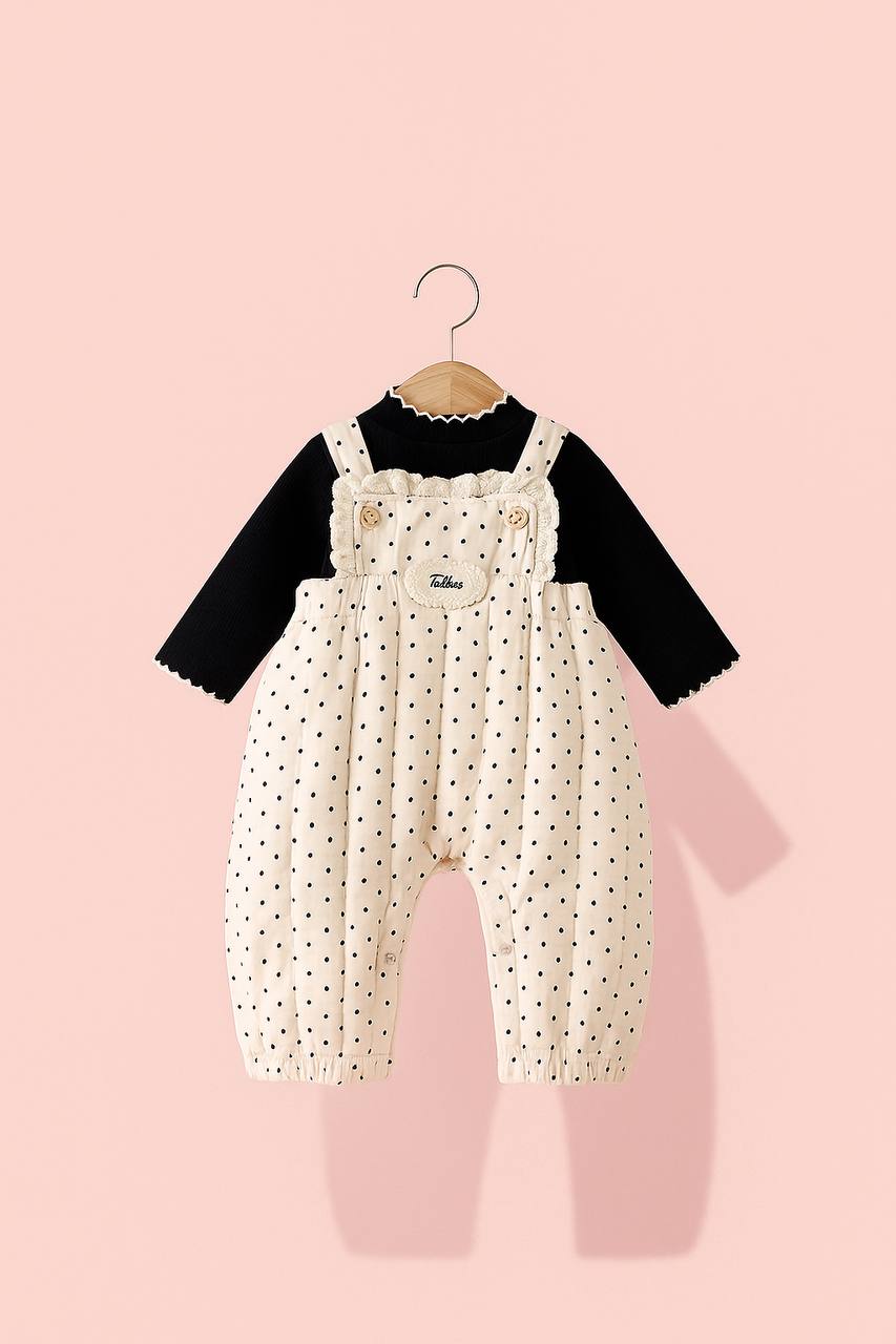 This cozy two-piece outfit includes a warm fleece-lined romper with adorable patterns and a matching long-sleeve undershirt.