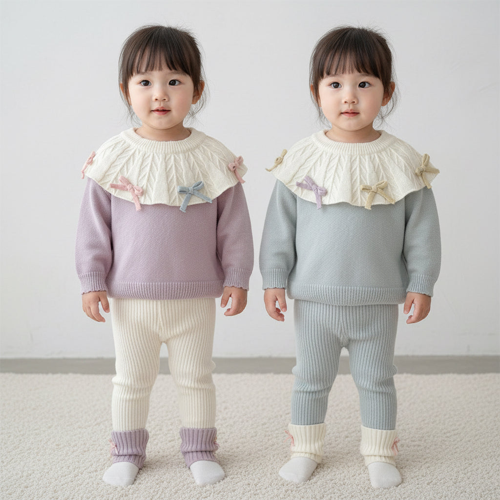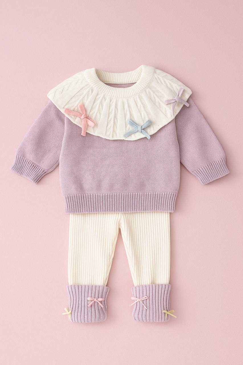 This adorable two-piece set is made for cozy autumn and winter days. The soft pastel design with mini bows adds a sweet, princess-like touch while keeping your little one warm and comfy.