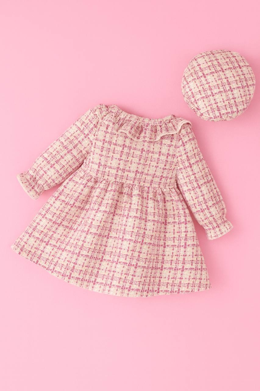 Soft, elegant, and irresistibly charming — The Lulu Set is made for your little one’s most precious moments. Crafted from cozy pink-and-cream tweed, this darling outfit features a ruffled collar, delicate buttons, and two satin bows for a touch of timeless sweetness. The matching beret completes the look, adding classic Parisian flair to every twirl and giggle. Perfect for special outings, photos, or simply feeling fancy every day. 💕