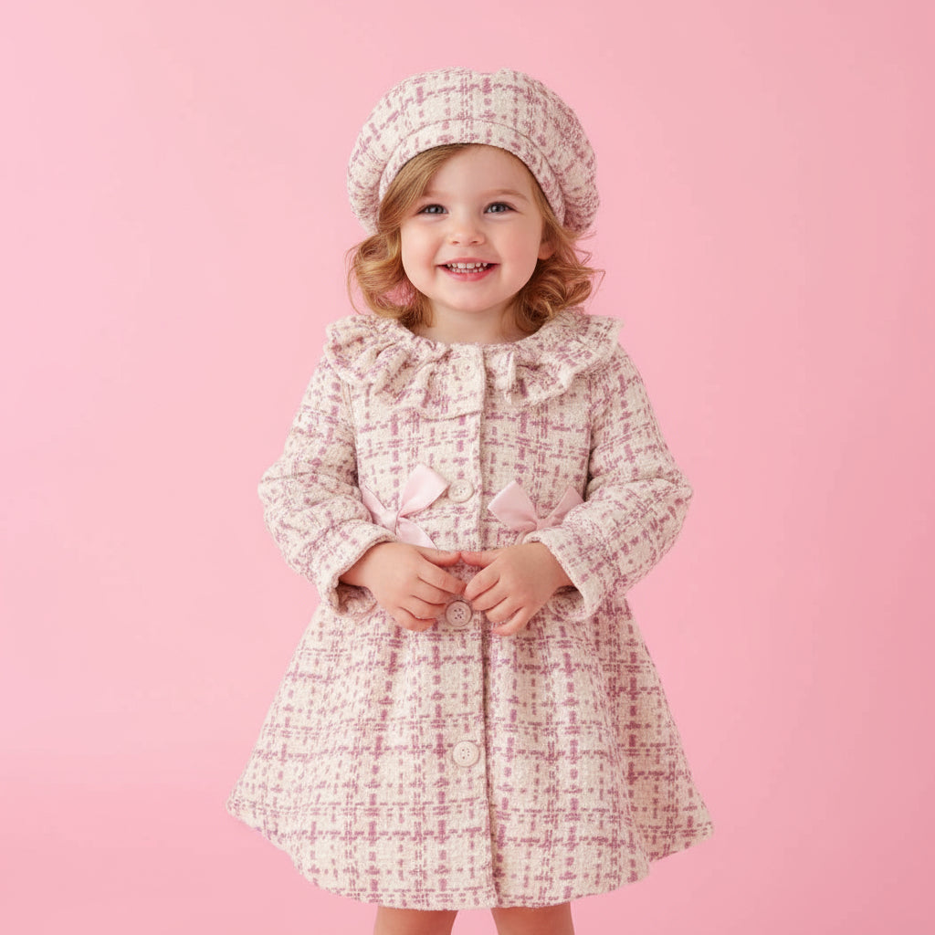 A charming pink plaid dress designed with soft woven fabric, featuring a delicate lace collar and a cute bowknot detail for the perfect girly look. The dress has a classic, elegant silhouette that feels comfortable and gentle on the skin, making it ideal for special occasions, photoshoots, or everyday princess moments. The soft pink tone and lace accents give it a sweet and timeless appeal.