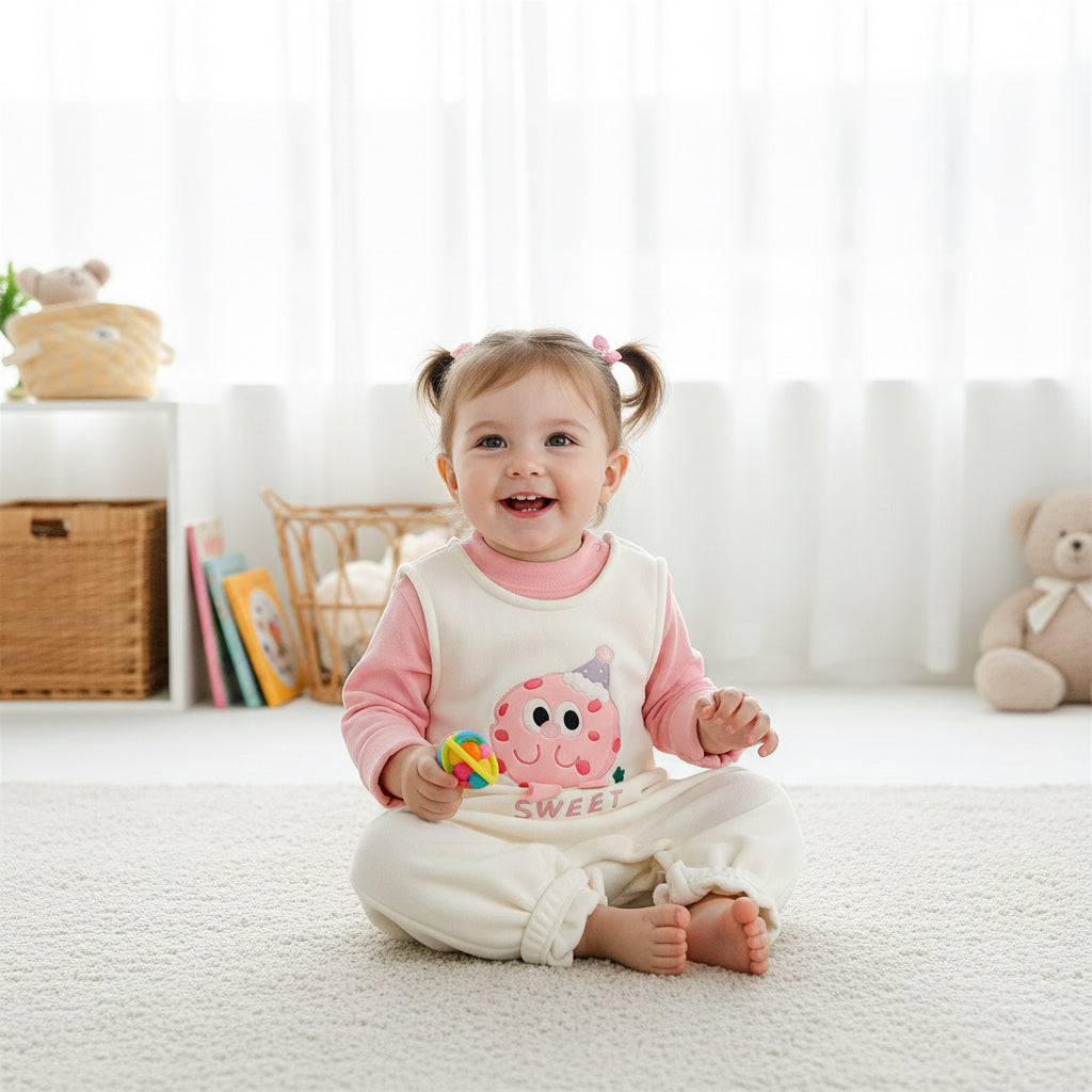 This adorable winter two-piece set giving a warm, cozy feel perfect for cold weather. The outfit includes a long-sleeve top and matching trousers, designed to keep your little one comfortable during winter days. The fabric is fleece-lined, gentle on the skin, and treated for extra softness.