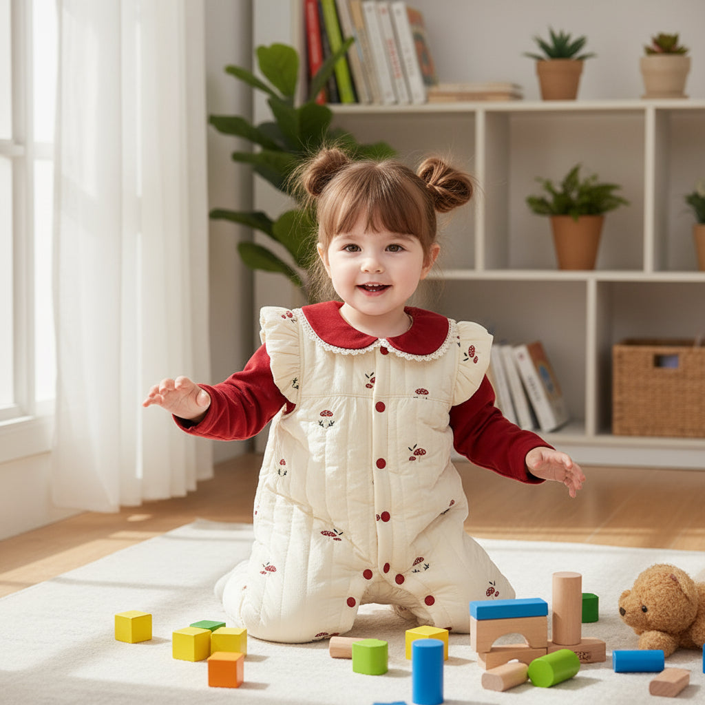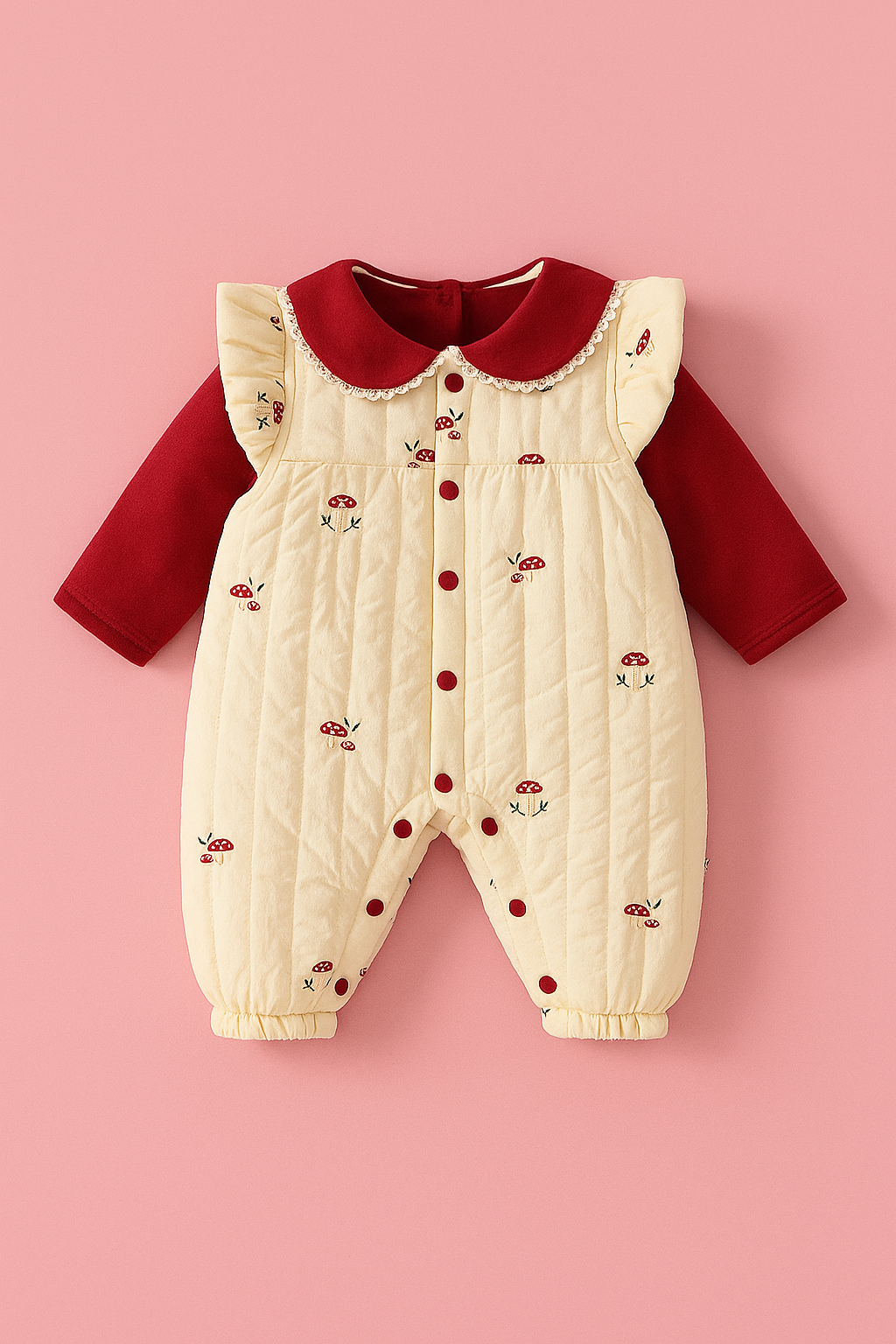 This cozy two-piece romper set is designed to keep your little one warm and snug during the cold season.