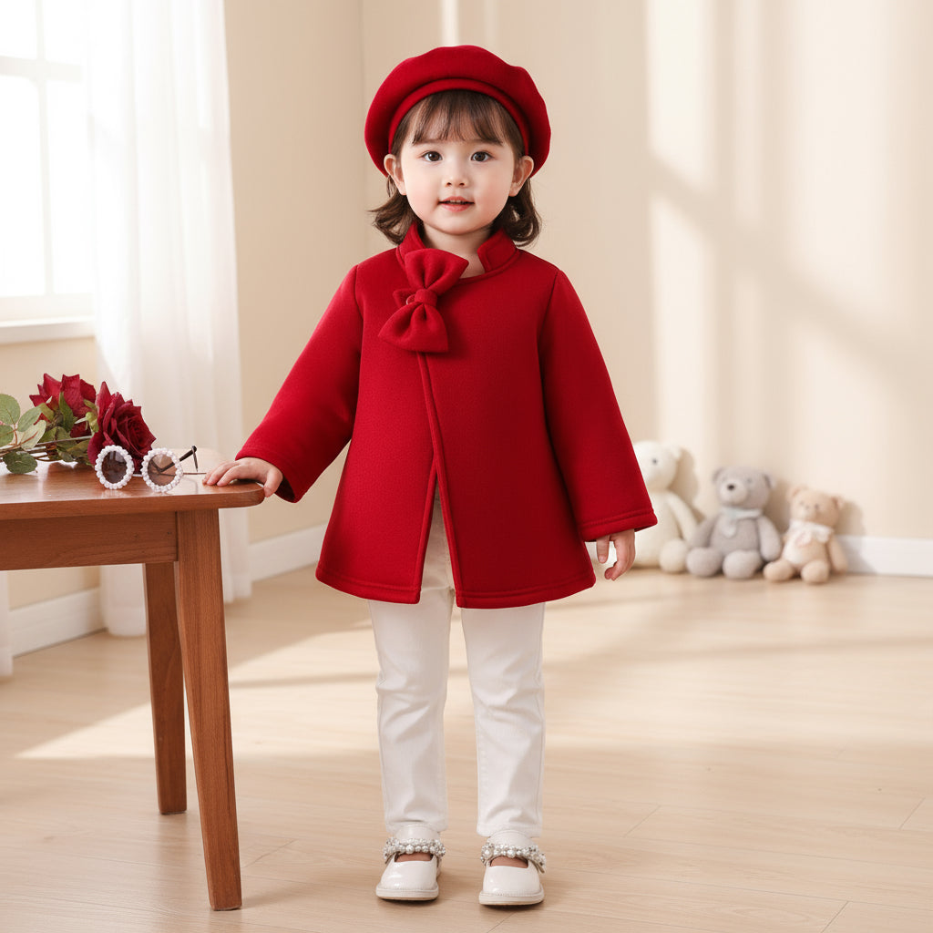 Adorable two-piece set including a cozy wool-like coat and matching hat.
