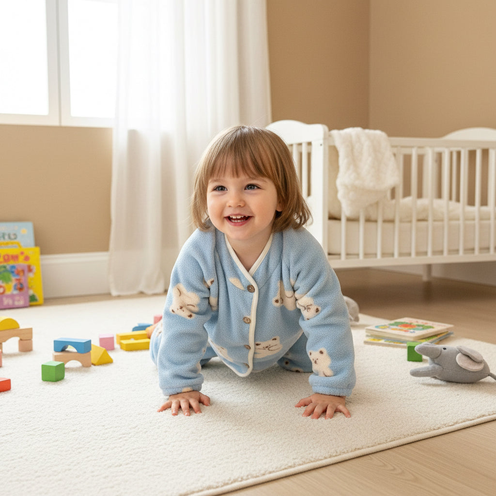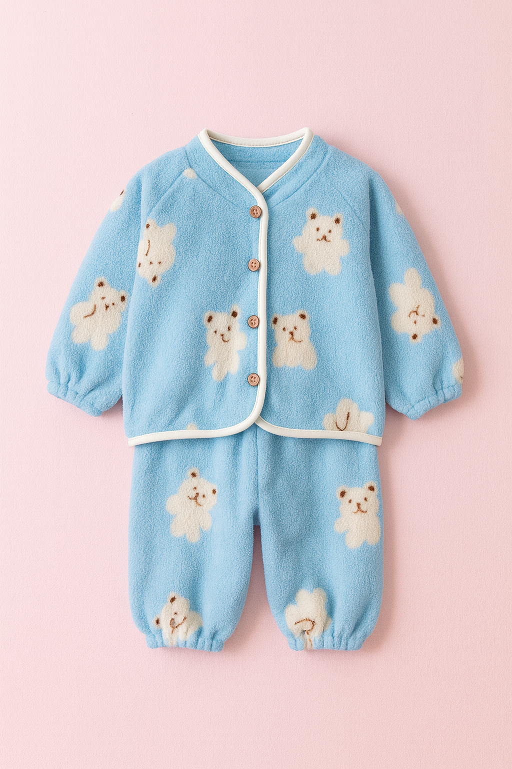 This is a soft, warm, winter-ready fleece pyjama set made from plush snow-flake textured fabric. The material is thick, cozy, and gentle on the skin, perfect for colder seasons. The set includes a long-sleeve top and matching pants, ideal for home, sleep, and indoor warmth.