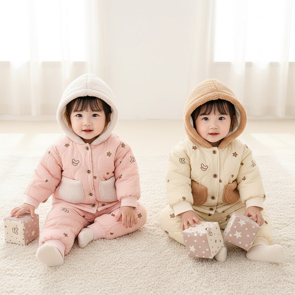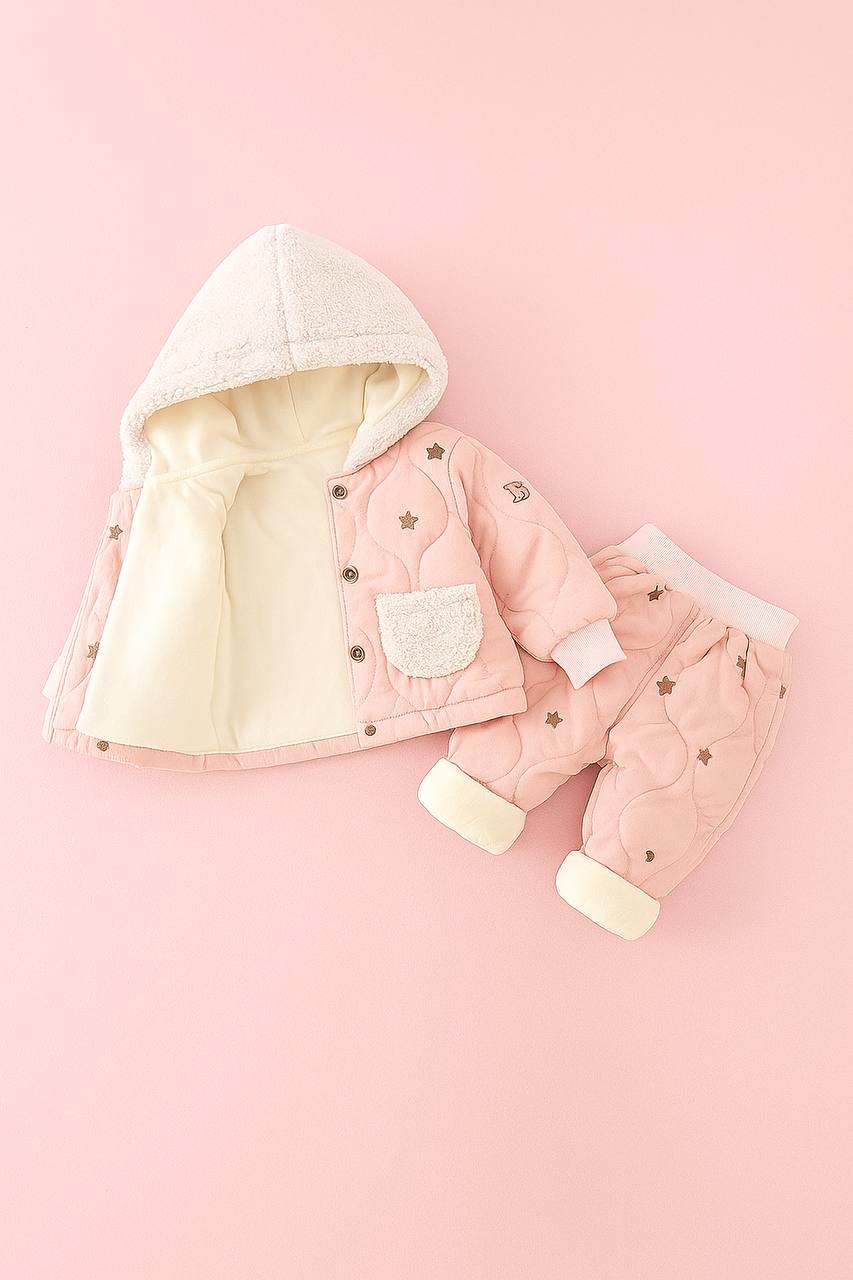 This thick fleece-lined jacket and matching pants keep your baby warm, soft, and stylish all season long.