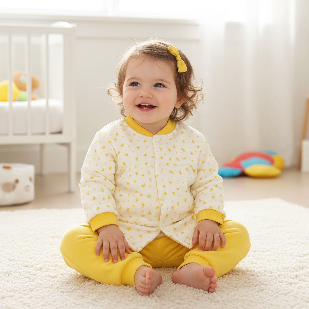 Designed with a delicate floral pattern and pastel tones, this outfit keeps your little one cozy while looking irresistibly cute.Β